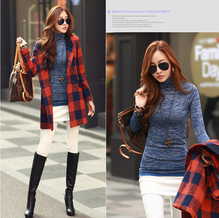 Fabric&Care:(1)Cotton Blend +Spandex (2)Hand WashingAccessories:NoOverview: (1)Long Sleeve (2)Color Block(3)Turtle Collar Fit&Sizing: Stretchable Detail In Tile Measurement: | Size(cm) | Shoulder | Bust | Length | Sleeve | Waist | | S | 34 | 76 | 54 | 54 | 76 | | M | 35 | 80 | 55 | 55 | 80 | | L | 36 | 84 | 56 | 56 | 84 | | XL | 37 | 88 | 57 | 57 | 88 | | XXL | 38 | 92 | 57 | 57 | 92 |