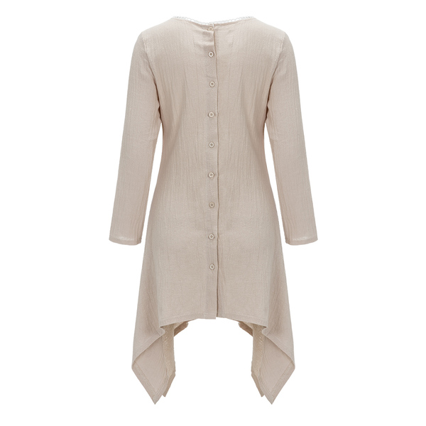 Accessory:No Overview:(1)Linen(2)Asymmetrical(3)CasualFit&Sizing:Non-StretchableDetail In Tile Measurement | Size(Cm) | Length | Bust | Waist | | S | 106 | 92 | 90 | | M | 106.5 | 96 | 94 | | L | 107 | 100 | 98 | | XL | 107.5 | 104 | 102 | | 2XL | 108 | 108 | 106 | | 3XL | 108.5 | 112 | 110 | | 4XL | 109 | 116 | 114 |