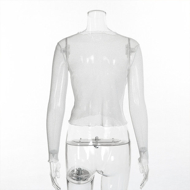 Accessory: NoOverview:(1) Mesh(2) Slim Fit(3) Cropped TeeFit & Sizing:Little StretchableDetail in Tile Measurement | Size(cm) | Bust | Length | Shoulder | Sleeve | | S | 72-84 | 46 | 32 | 56 | | M | 76-88 | 47 | 33 | 57 | | L | 80-92 | 48 | 34 | 58 |