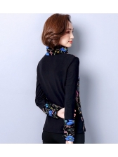 • Korean Design High Neck Blue Flower Fitted Shirt