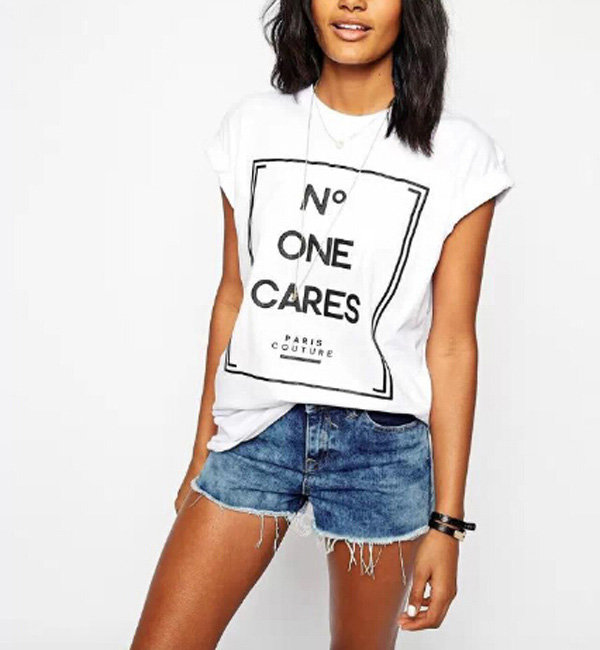 Accessory:NoOverview:(1)Letter Print(2)Casual(3)CottonFit&Sizing:Non-StretchableDetail In Tile Measurement | Size(Cm) | Shoulder | Bust | Length | | S | 40 | 92 | 62 | | M | 42 | 94 | 64 | | L | 43 | 100 | 66 | | XL | 45 | 102 | 68 | | 2XL | 47 | 106 | 71 |