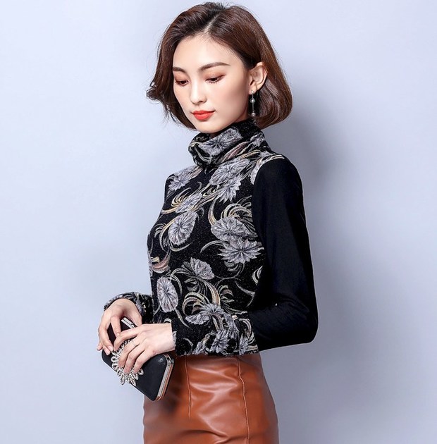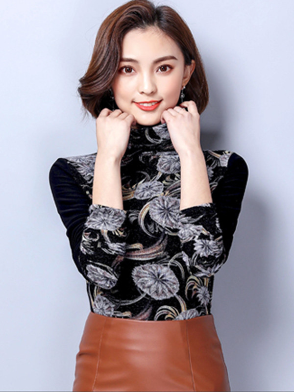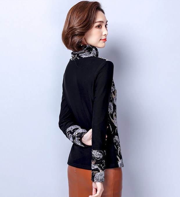 • Simple Design High Neck Patchwork Pattern Shirt