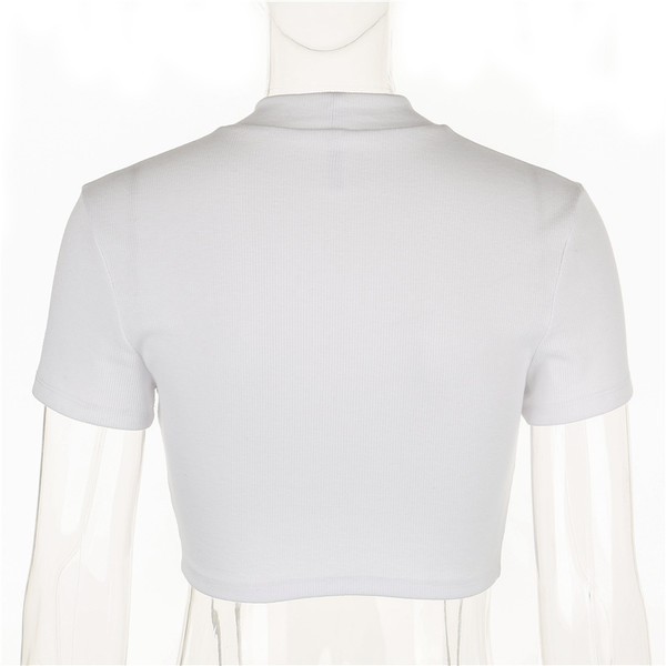 Accessory: NoOverview:(1) Polyester Spandex(2) Slim Fit(3) Sexy T-shirtFit & Sizing: Little StretchableDetail in Tile Measurement | Size(cm) | Bust | Length | Shoulder | Sleeve | | S | 72 | 36 | 33 | 14 | | M | 76 | 37 | 34 | 15 | | L | 80 | 38 | 35 | 16 |