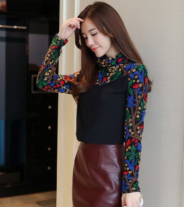 Sweet High Neck Floral Printing Shirt