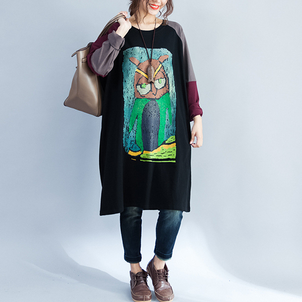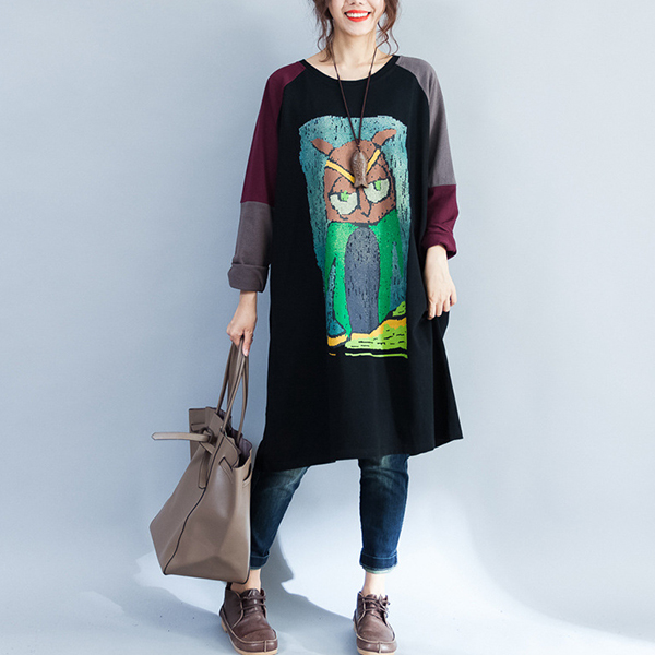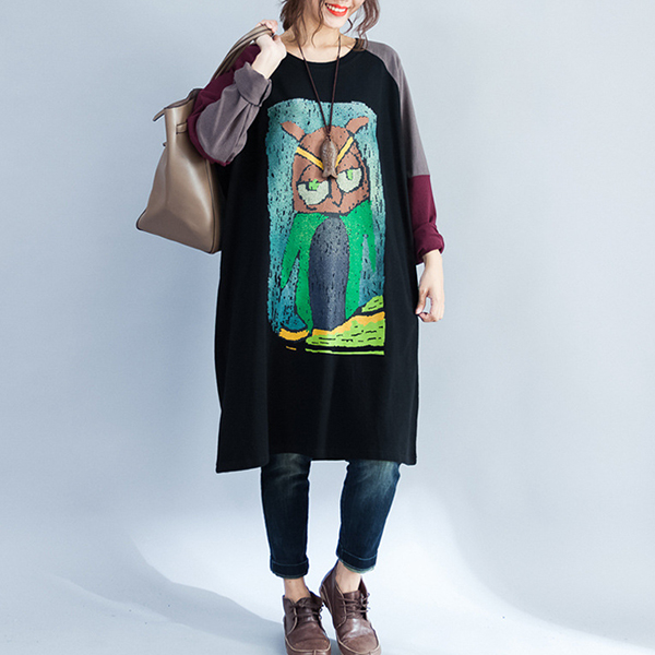 Accessory:NoOverview:(1)Cotton Blend (2)Loose (3)Patchwork Fit&Sizing:Non-StretchableDetail In Tile Measurement | Size(Cm) | Length | Shoulder | Bust | Sleeve | | One Size | 96 | 68 | 132 | 68 |