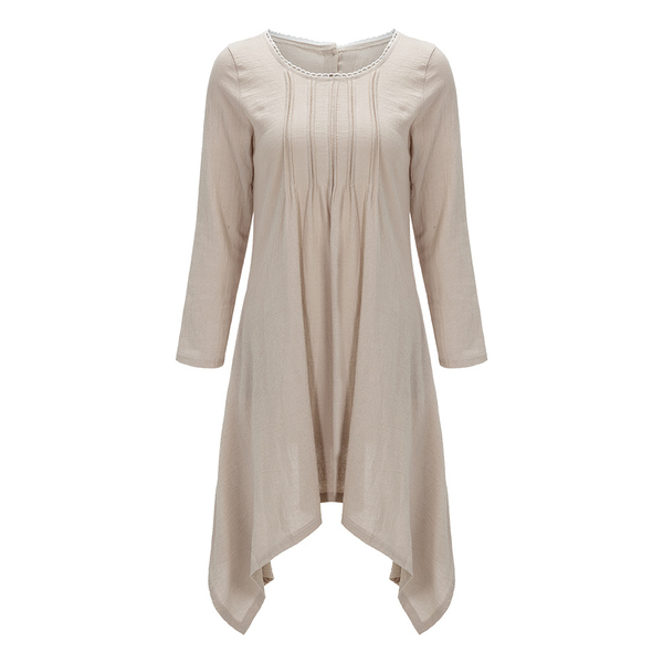 Accessory:No Overview:(1)Linen(2)Asymmetrical(3)CasualFit&Sizing:Non-StretchableDetail In Tile Measurement | Size(Cm) | Length | Bust | Waist | | S | 106 | 92 | 90 | | M | 106.5 | 96 | 94 | | L | 107 | 100 | 98 | | XL | 107.5 | 104 | 102 | | 2XL | 108 | 108 | 106 | | 3XL | 108.5 | 112 | 110 | | 4XL | 109 | 116 | 114 |