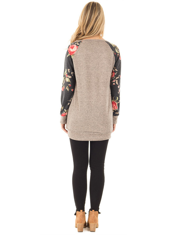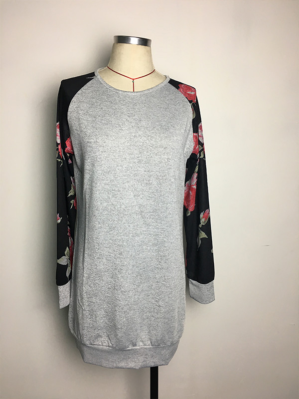 Easy Match Crew Neck Patchwork Printing Long Shirt