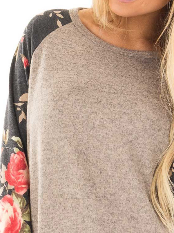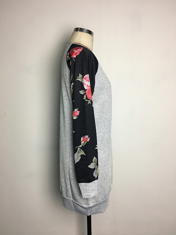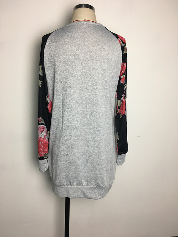 • Easy Match Crew Neck Patchwork Printing Long Shirt