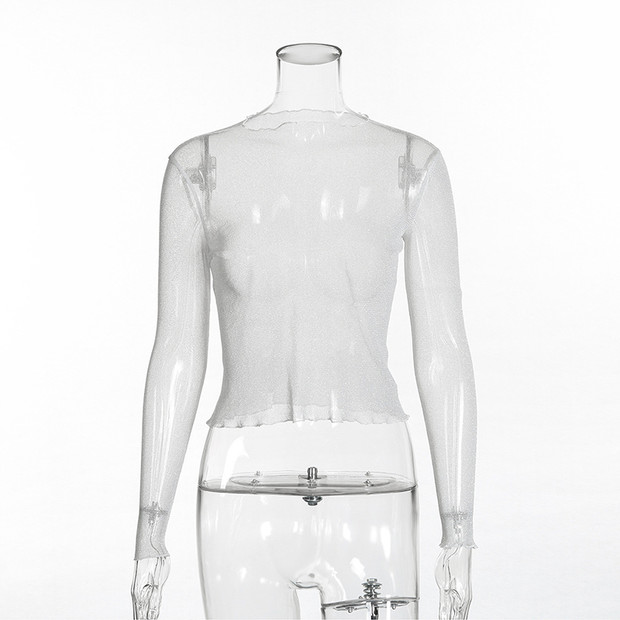 Accessory: NoOverview:(1) Mesh(2) Slim Fit(3) Cropped TeeFit & Sizing:Little StretchableDetail in Tile Measurement | Size(cm) | Bust | Length | Shoulder | Sleeve | | S | 72-84 | 46 | 32 | 56 | | M | 76-88 | 47 | 33 | 57 | | L | 80-92 | 48 | 34 | 58 |