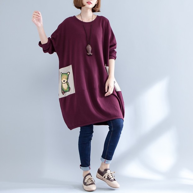 Accessory:NoOverview:(1)Polyester (2)Loose(3)StylishFit&Sizing:Non-StretchableDetail In Tile Measurement | Size(Cm) | Length | Bust | Sleeve | Shoulder | | One Size | 95 | 133 | 39 | 78 |