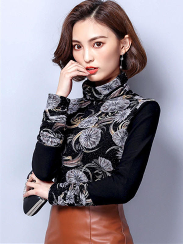• Simple Design High Neck Patchwork Pattern Shirt