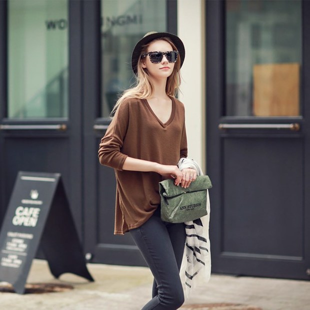 Accessory: NoOverview:(1) Mid Waist(2) Loose Fit(3) Casual Long Sleeve TeeFit & Sizing:Little StretchableDetail in Tile Measurement | Size(cm) | Bust | Length | Sleeve | Waist | | One Size | 118 | 68 | 61 | 104 |