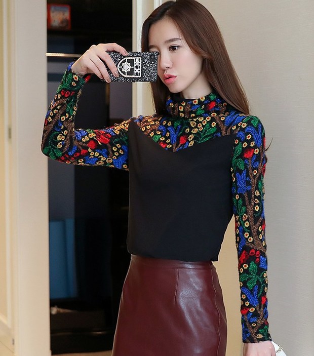 Sweet High Neck Floral Printing Shirt